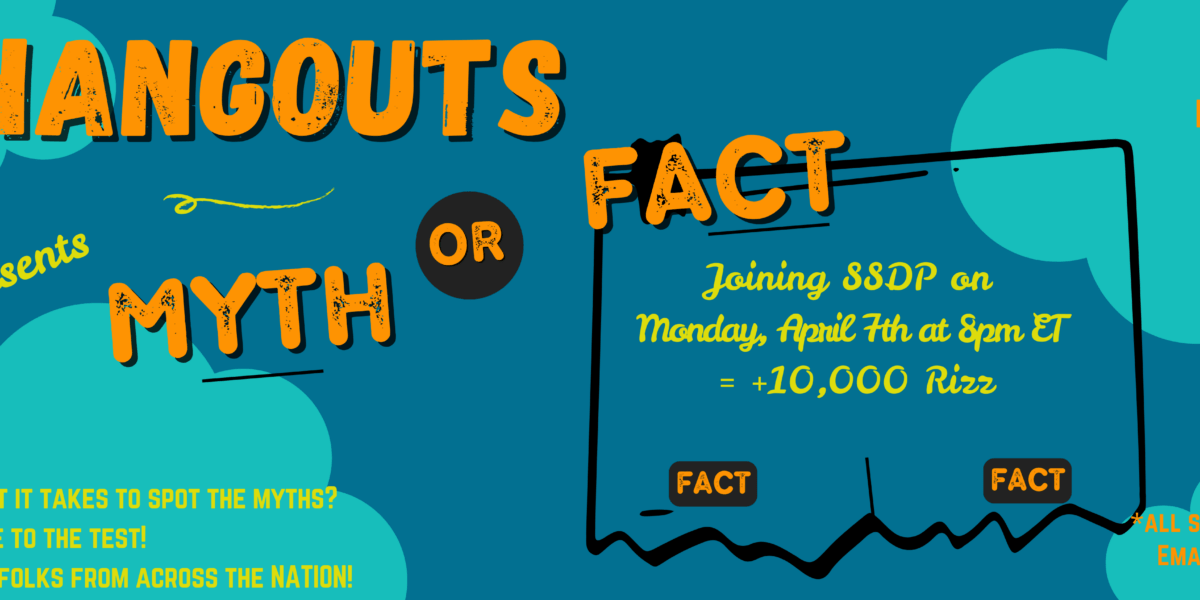 Join us on Monday, April 7th at 8:00 pm ET for a collegial, fun, friendly, and (slightly) competitive round of Myth or Fact! Hang out with SSDP folks from across the nation, discuss drug policy, and learn more about ongoing events. Please direct any questions to amanda.ivatorov@board.ssdp.org. We hope to see you all there! Visit this link to join via