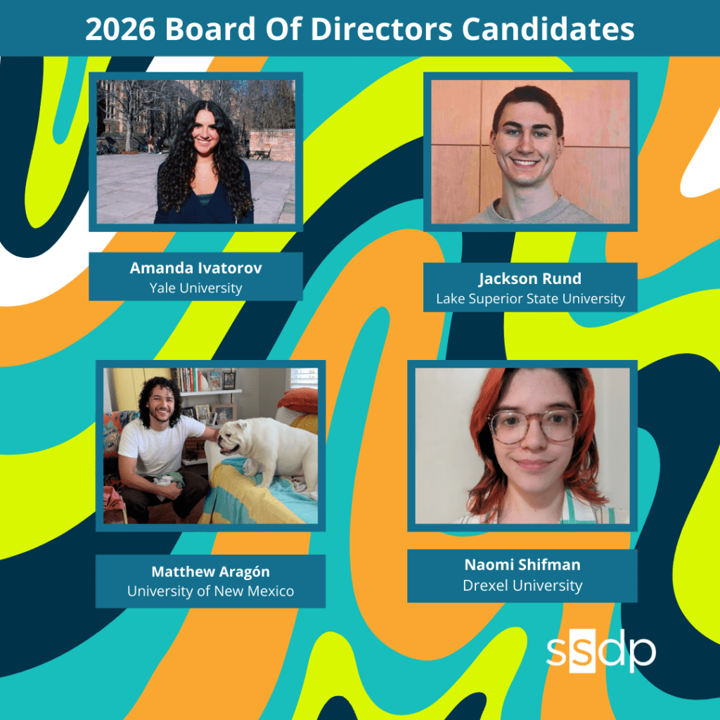 SSDP’s Congress Committee is excited to announce we have finalized the results of the Board of Directors election! Please join us in extending a warm welcome to our new Elected Directors, Amanda Ivatorov, Jackson Rund, Matthew Aragón, and Naomi Shifman!